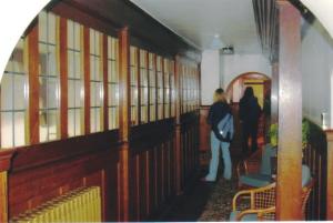 Here is another view of the stove in the drawing room, with painter, carpenter and Carl Larsson himself in the mirror.