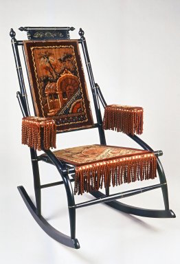 This is an American example of the Charles Eastlake style, and I think a very close look-alike to the bench in the film. (Circa 1880 from D. Dexter's Sons, it is now a part of the Brooklyn Museum's collection.)